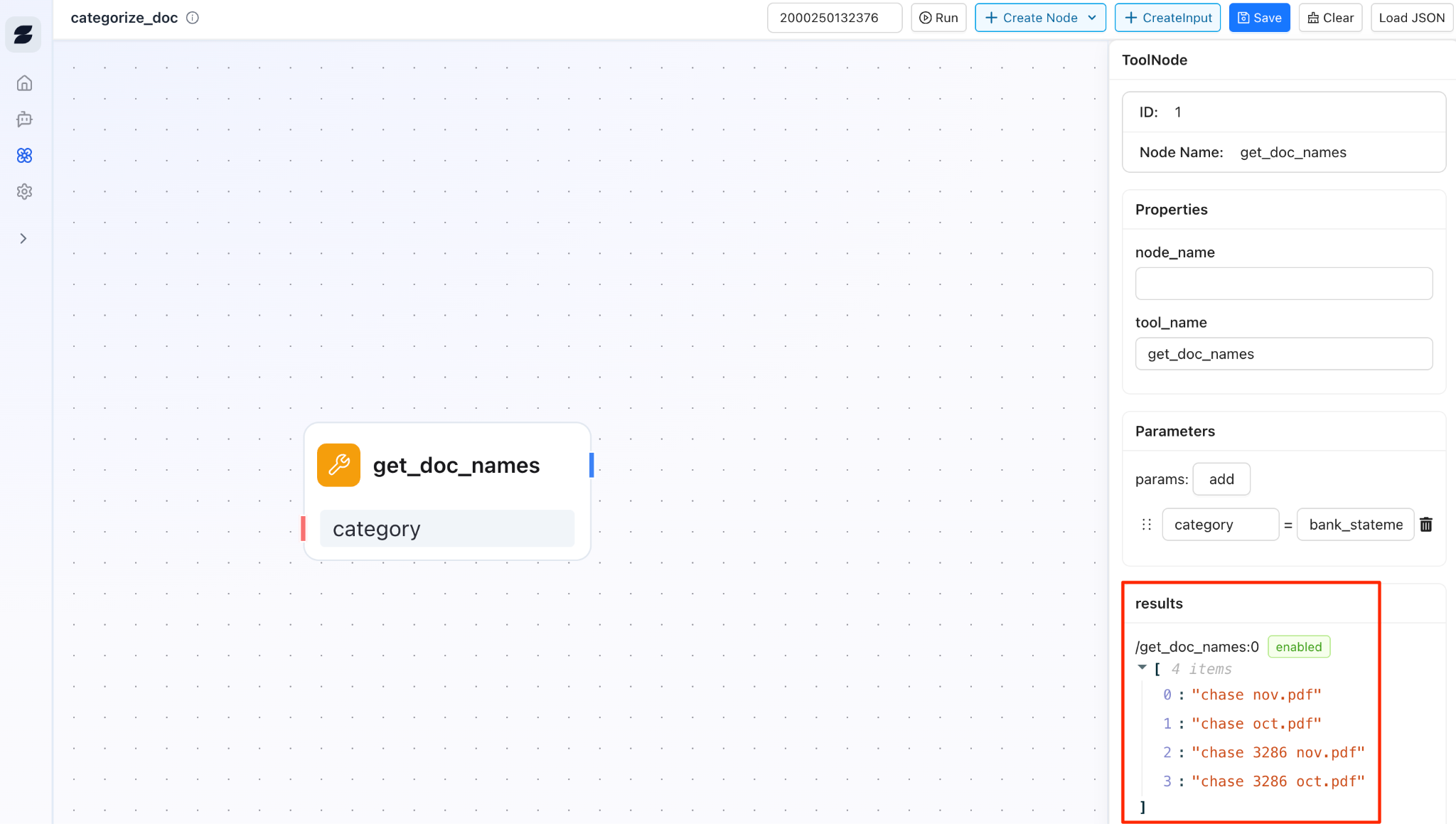 We provide a built-in tool called get_doc_names. It takes a category (like "bank_statement") and instantly returns every matching document in the loan file.